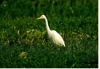 出現月份:1~12 常見地點:沈沙池、小池、大池 中白鷺,長69公分,全身白色,眼先黃色,腳趾黑色。夏季嘴黑色,前頸下、背有長飾羽;冬季嘴黃先端黑色,無飾羽。已有確定在台灣繁殖的記錄,出現於海岸、河口、沼澤、沙洲…等水域附近,常與其他鷺科混群。