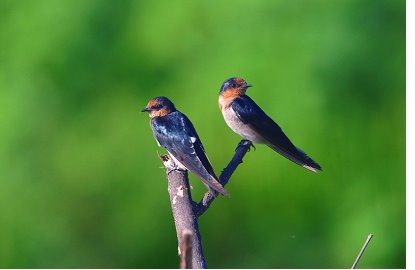 出現月份:1~12 常見地點:植栽保留區、小池、大池 燕科,長13公分,背面黑色,尾羽略分叉,額、喉銹紅色,腹面淡灰褐色,尾下覆羽黑色有白鱗斑;飛行時翼下覆羽灰黑色。出現於平地至低海拔,是最常見的燕子,飛行時常鳴叫。築巢於牆面近屋頂之角落處,巢呈半碗狀。
