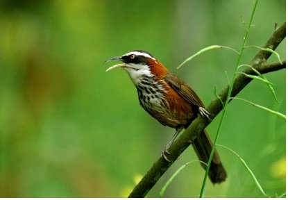 出現月份:1~12 常見地點:植栽保留區、東側木棧道 小彎嘴,長22公分,嘴長下彎,上嘴黑色下嘴黃色,腳鉛灰色,背面、尾下覆羽暗褐色,頸至上背紅褐色,過眼線粗黑,眉線、喉至胸白色,胸有褐色斑紋,腹栗褐色雜有白斑。單獨或小群出現於低、中海拔之闊葉林、灌木叢中。習性隱密,叫聲嘹亮多變,經常發出似「嘟嘟、嘟嘟」或「嘎歸–嘎歸–」之聲。