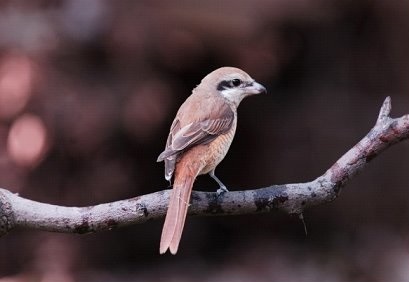 With a length of 18 centimeters, the Lanius cristatus (brown shrike) has black tip-hooked stubby beak, dull brown color on the back, and dark brown color on the wings and tail feathers. The male bird has wide and long black eye lines, white color on the cheeks and throat, and light brown color below the chest; while the female bird has thinner eye lines, white brow lines, and mixed fine scaly stripes on the abdomen. It shows up on the smooth fields and open areas. Loving to perch on protruding object in the open, the brown shrike often lets out coarse continuous sounds as well as melodious sounds.