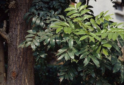 An evergreen tree with brown young twigs and dense leathery pores, the Swietenia macrophylla King (Honduras mahogany) has monopinnate leaves and askew and asymmetric leaflet bases, looking rather like a crescent. Most deciduous plants bare all their leaves, but the Honduras mahogany is different. It takes off its leaves all over the ground in April. Its yellow green little flowers bloom in summer, which is not easy to discover. Nevertheless, its woody brown capsular fruit is very big. There are thin wings at the seeds. When the fruit ripens, the capsular fruit cracks into five thickness flaps. At that time people can see many thin and long red brown propeller-like seeds first flying in the air then slowly dropping to the ground up-side down. Its trunk is straight and wood quality hard and dense, making it an excellent material for making furniture and constructing buildings.